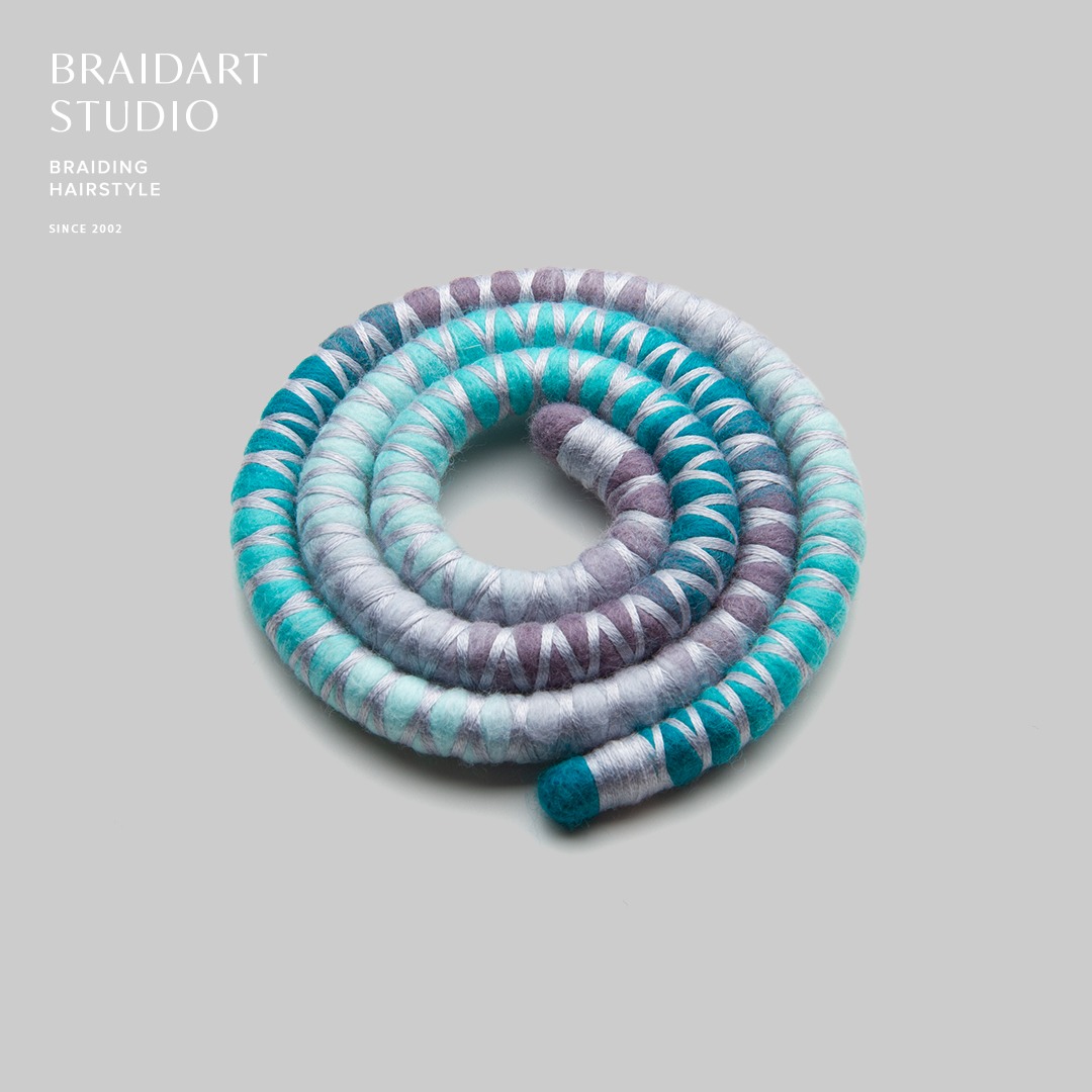 Яркий и необычный луполокс в мятно-серых оттенках, длина — 60 см. Луполокс — это нестандартная и удобная альтернатива резинке для волос. Те, кто часто заплетают дреды, косы или кудри, нередко сталкиваются с проблемой найти большую и прочную резинку для причёсок, которая не будет растягиваться и передавливать причёску при длительном ношении. Отличная альтернатива — луполокс! Это по сути мягкая и пластичная проволока, покрытая шерстью и нитками разных цветов. Его очень удобно оборачивать вокруг хвоста или пучка, он не растягивается со временем и не передавливает дреды или косы.