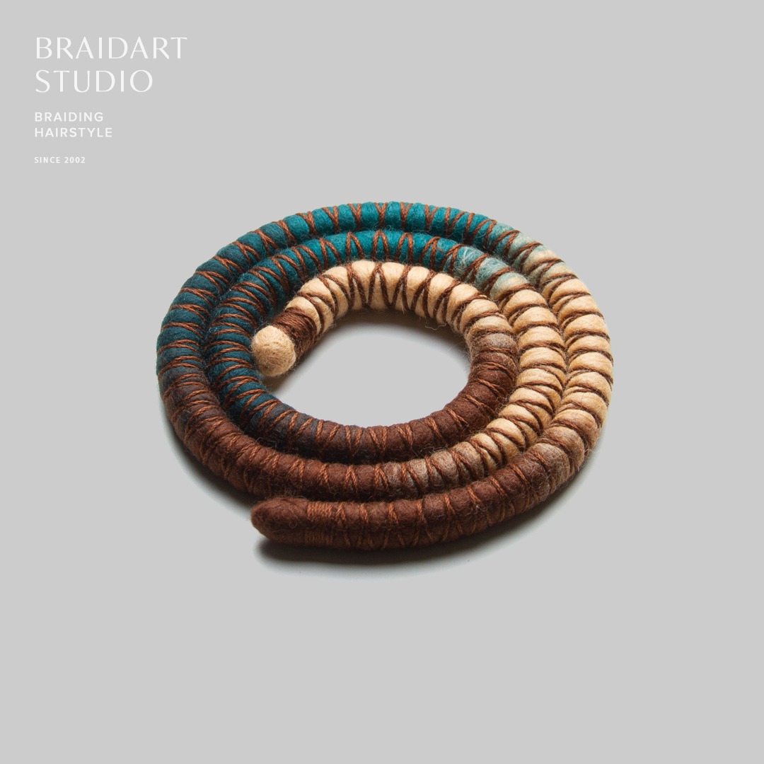 Яркий и необычный луполокс в бежево-коричневых оттенках, длина – 60 см. Луполокс – это нестандартная и удобная альтернатива резинке для волос. Те, кто часто заплетают дреды, косы или кудри, нередко сталкиваются с проблемой найти большую и прочную резинку для причёсок, которая не будет растягиваться и передавливать причёску при длительном ношении. Отличная альтернатива – луполокс! Это по сути мягкая и пластичная проволока, покрытая шерстью и нитками разных цветов. Его очень удобно оборачивать вокруг хвоста или пучка, он не растягивается со временем и не передавливает дреды или косы.