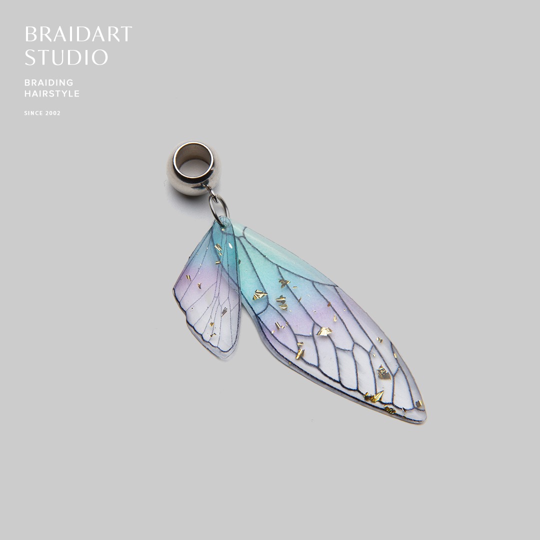 Бусина с розово-голубыми крыльями бабочки отлично подходит для любого типа дред, кос и других афропричёсок, в Спб или с доставкой.