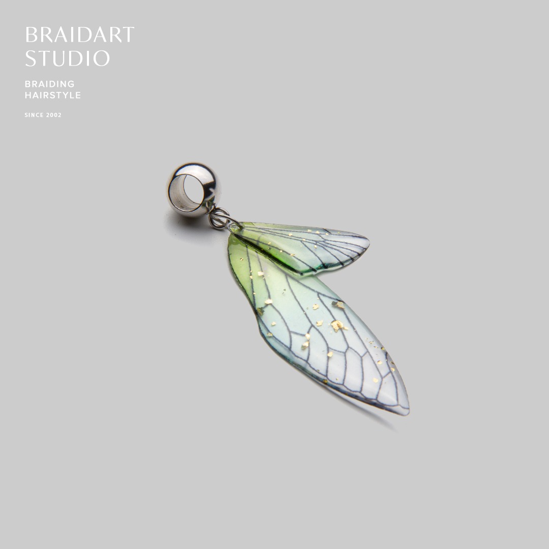 Бусина с зелёными крыльями бабочки отлично подходит для любого типа дред, кос и других афропричёсок, в Спб или с доставкой.