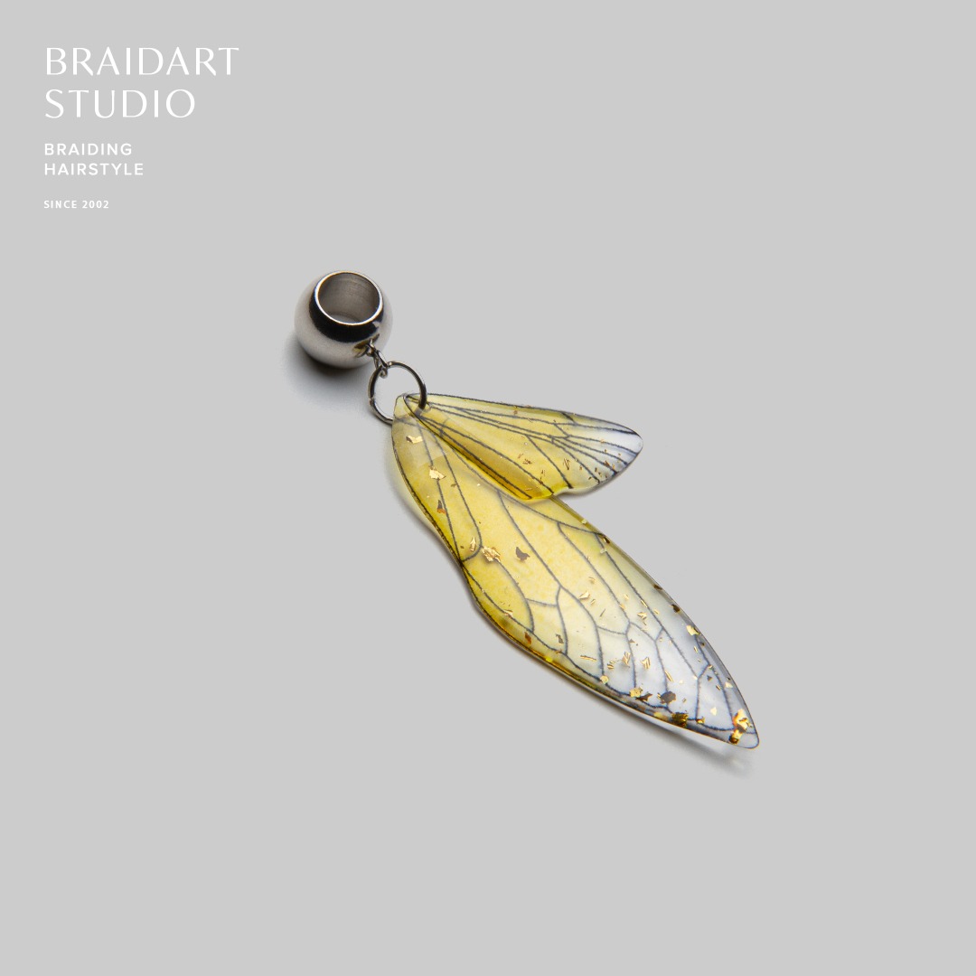 Бусина с жёлтыми крыльями бабочки отлично подходит для любого типа дред, кос и других афропричёсок, в Спб или с доставкой.