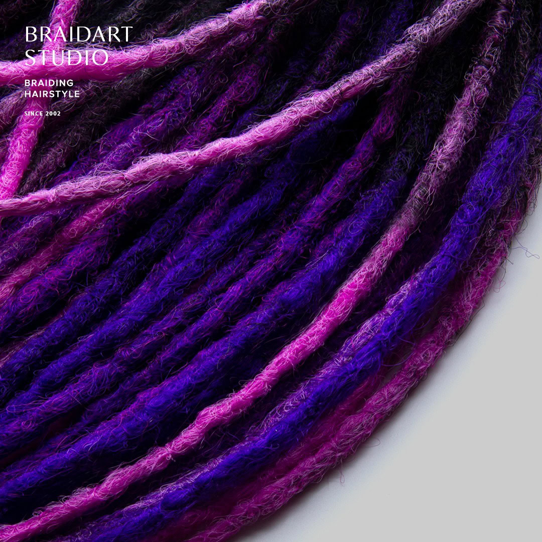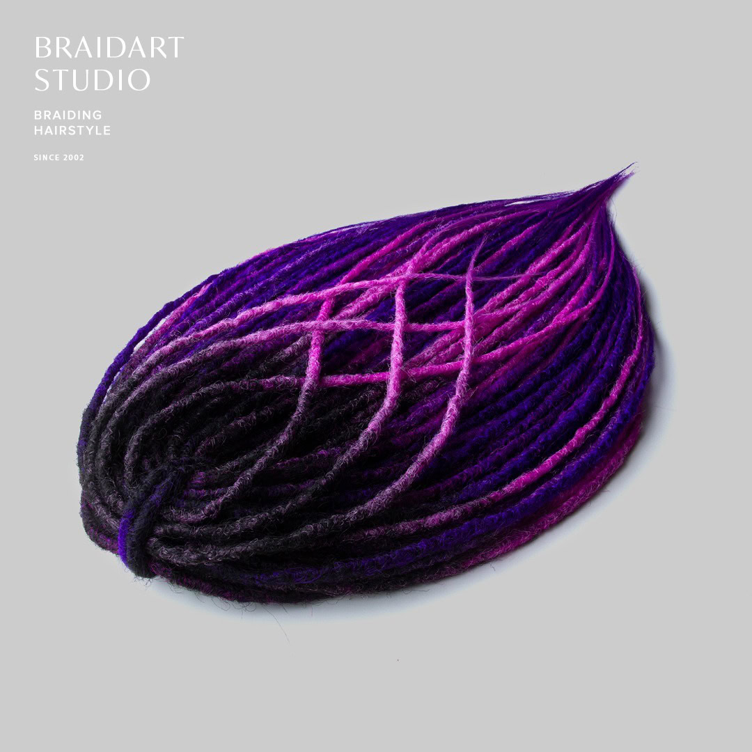 Многоразовый комплект фиолетовых дред с розовыми акцентами, фактура «под натуральные», под заказ. Срок носки — до 2 мес.